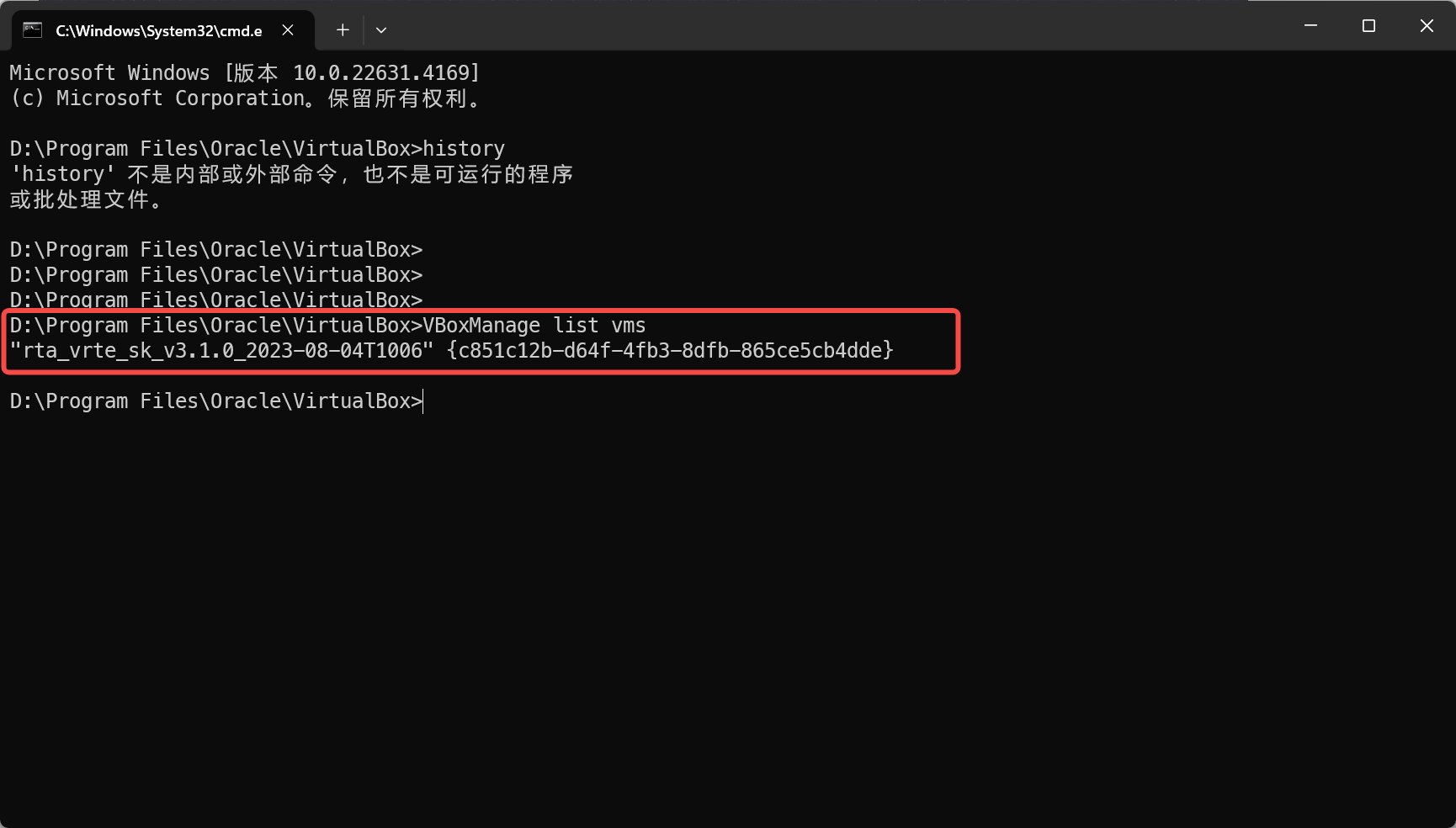 记住上述的虚拟机的名称,然后输入以下命令禁止时间同步: