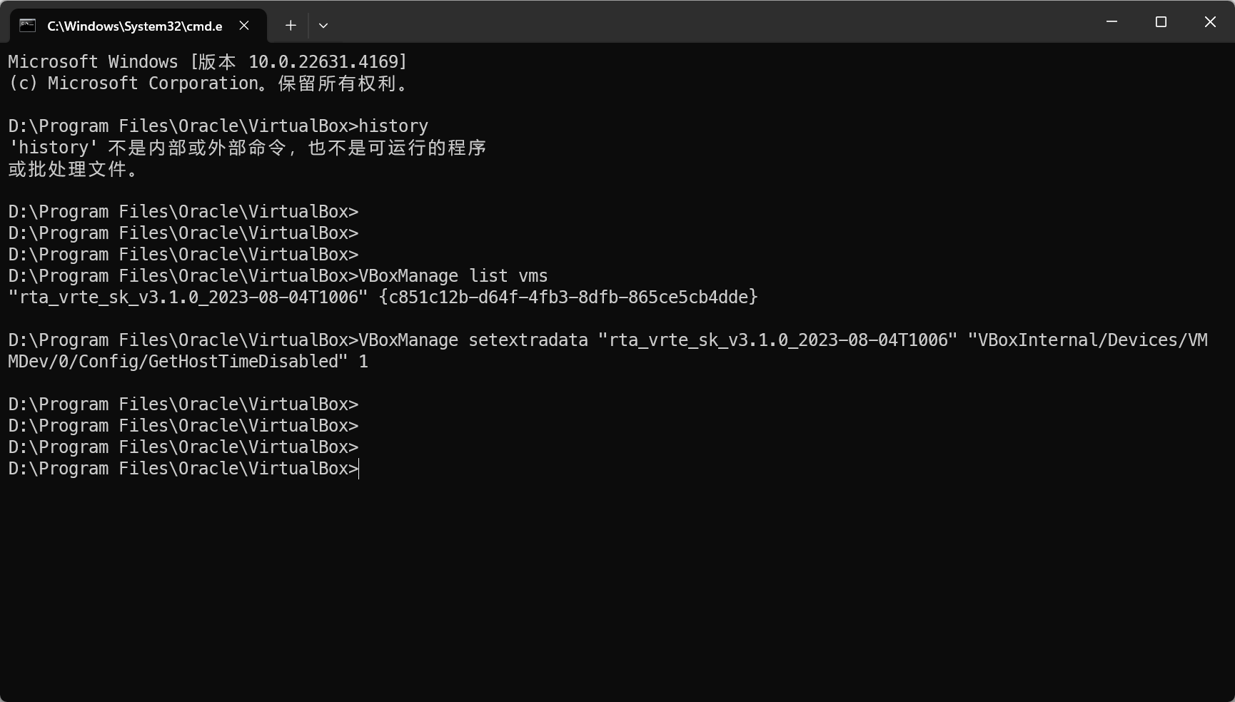 VBoxManage setextradata "rta_vrte_sk_v3.1.0_2023-08-04T1006" "VBoxInternal/Devices/VMMDev/0/Config/GetHostTimeDisabled" 1