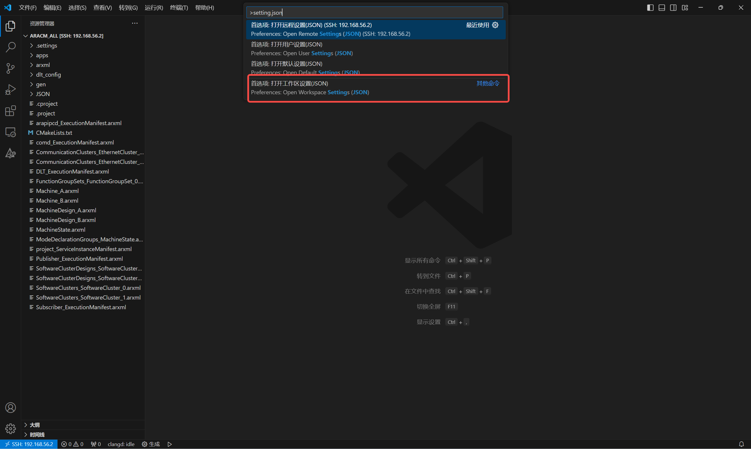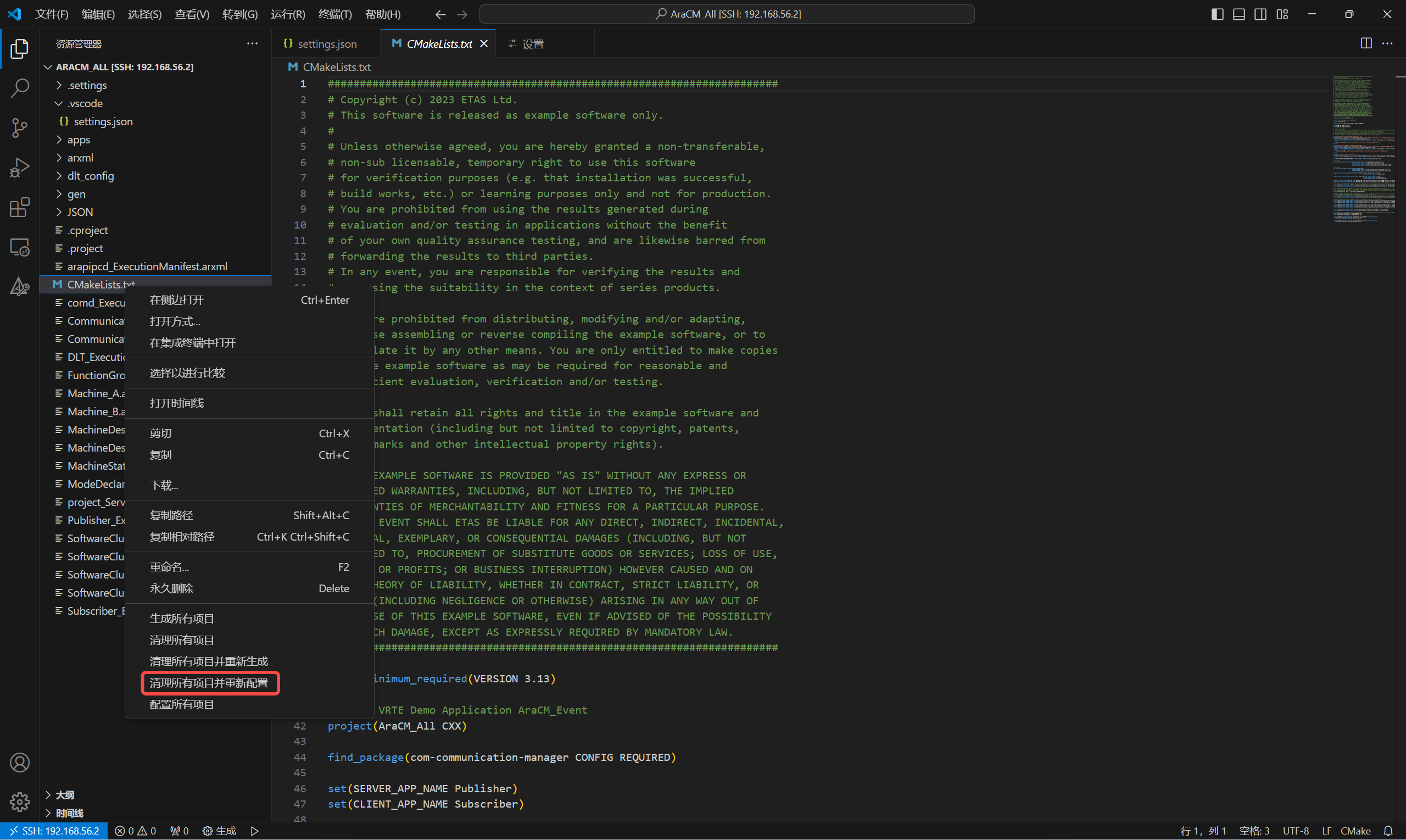 当目前为止,准备工作已经做完。现在使用vscode打开一个etas项目,例如打开AraCM_All。