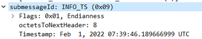 显示数据包的源时间戳。Endianness表示它是小字节序(1)还是大字节序(0)。