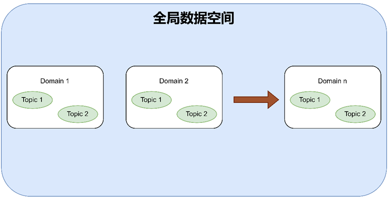 DDS 首先定义了通信的基础,也就是一个共享数据空间,有如下构成:全局数据空间(Global Data Space)、域 (Domain)、主题(Topic)。