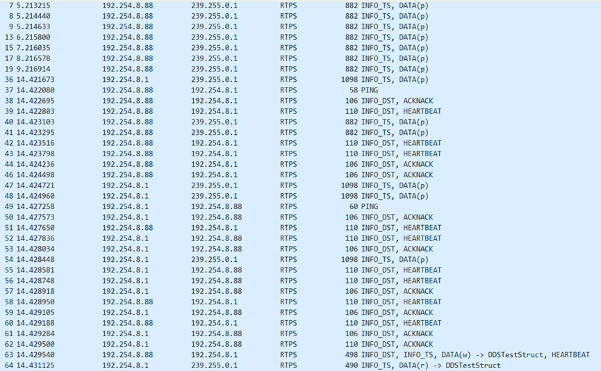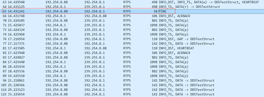 1 2 rtps.sm.wrEntityId == 0x000003c2 # 筛选DataWriter rtps.sm.wrEntityId == 0x000004c2 # 筛选DataReader