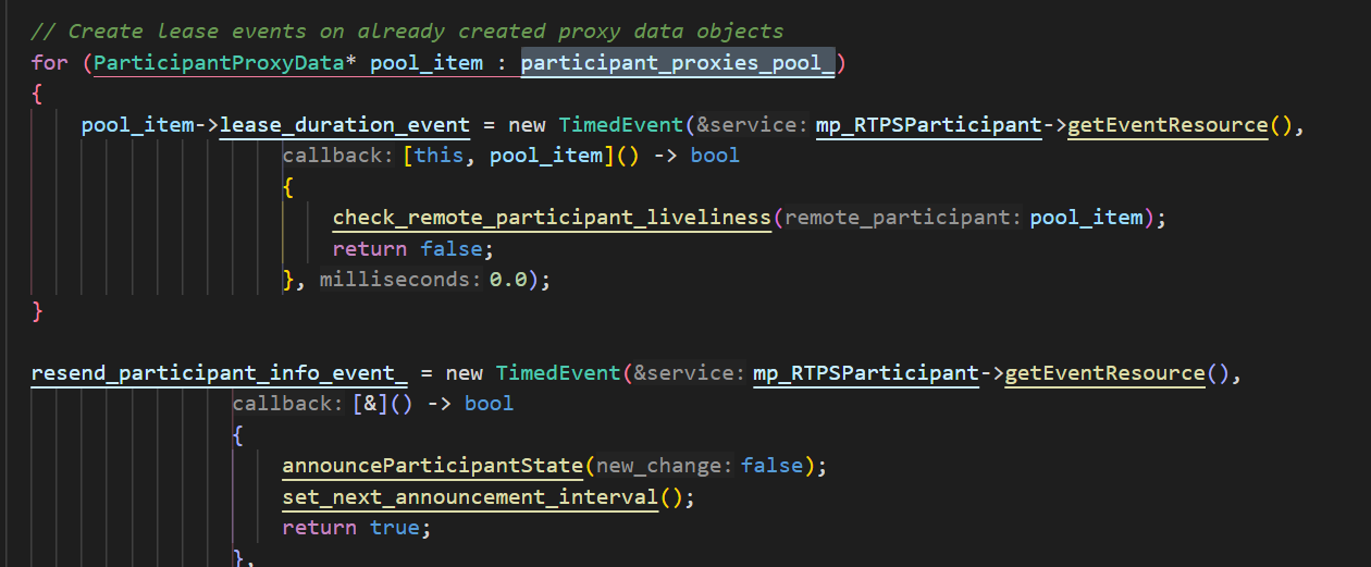 - 首先mp_PDP->enable()会创建两个定时器,第一个是判断参与者是否掉线的,掉线就删除 这个时间控制是leaseDuration 控制的 租赁时间默认是20秒,也就是说20秒内未收到公告数据就判定为掉线。