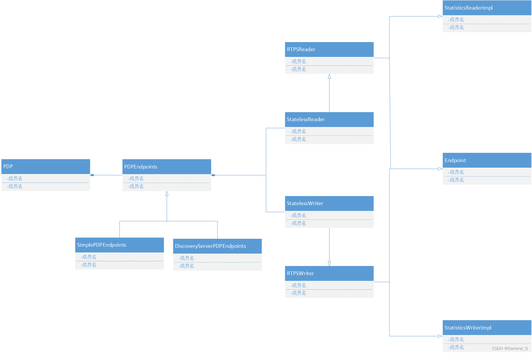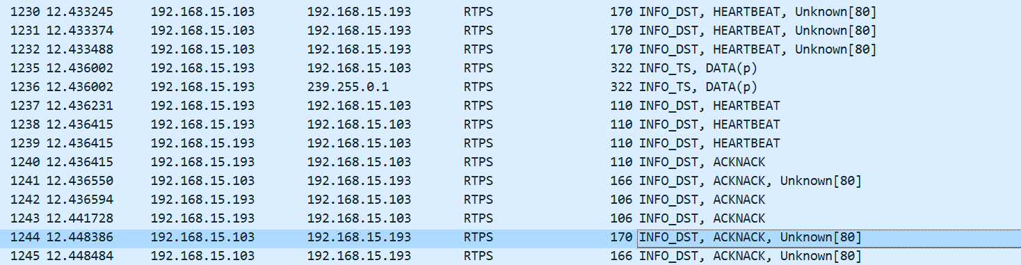 - Endpoint Discovery Phase (EDP):这个阶段DomainParticipant会广播其publihser和Subscriber的信息,同时也会接收其他DomainPariticipant的Puiblisher和Subscriber信息。对于两个要匹配的端点而言,topic和data type必须要一致。一旦Puiblisher和Subscriber匹配上之后,就可以接收和发送用户数据了。
