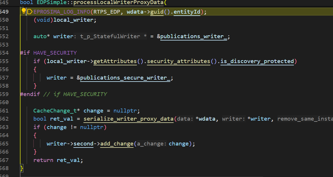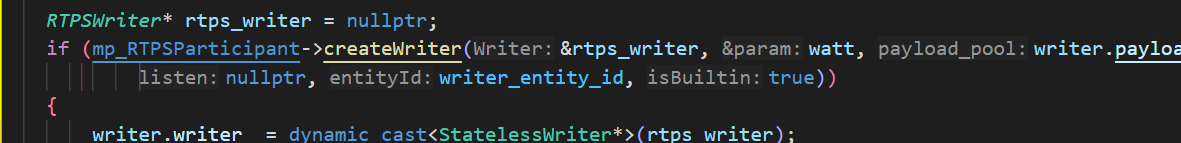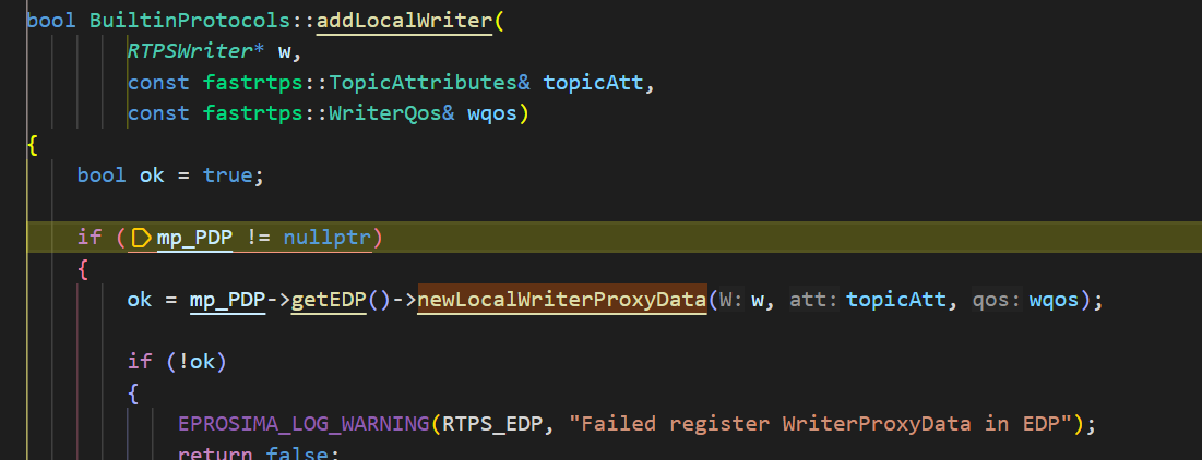 UserWriter是在BuiltinProtocols::addLocalWriter函数中调用EDP::newLocalWriterProxyData函数,在processLocalWriterProxyData中发送SEDP数据